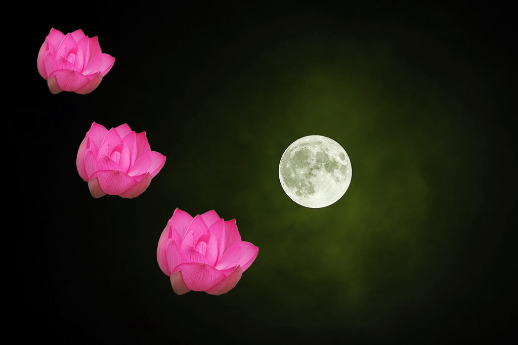 まず、蓮の背景から花を切り抜いて、背景に色を塗るというところから。